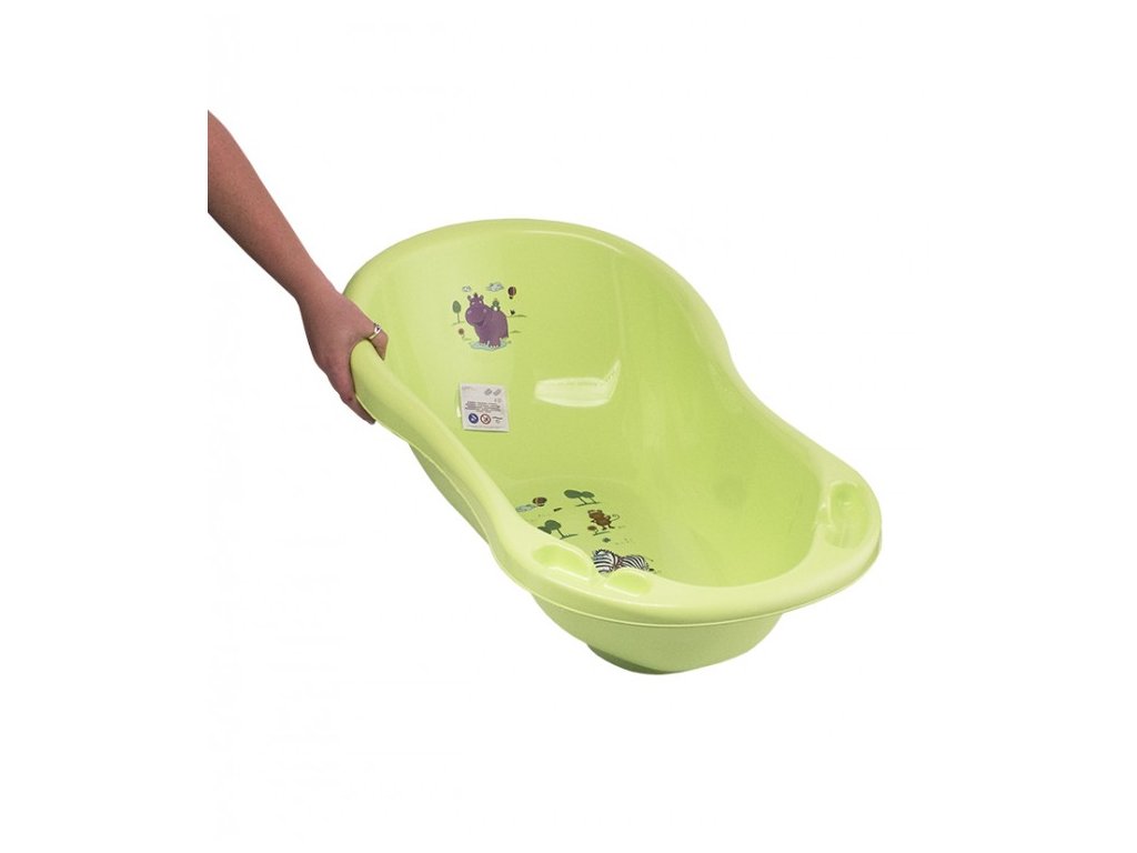 Krásná plastová vanička v zelené barvě je ideální pro koupání Vašeho miminka. Vanička je vybavena otvory na potřeby jako je mýdlo, houbička. Ve stejné kolekci můžete, taktéž dokoupit lehátko do vaničky, desku na wc, stupínek a nočník , přebalovací podložky, kyblík na pleny a vaničku s vestavěným lehátkem ve stejné protiskluzové kolekci.