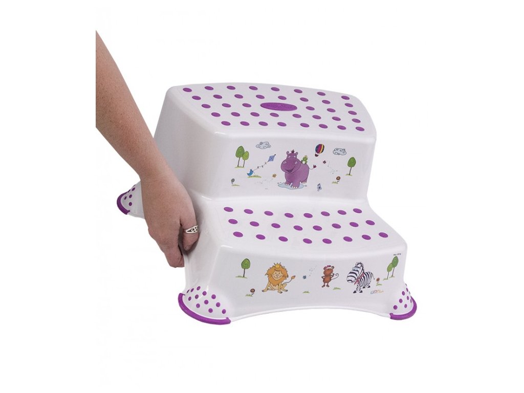 Krásné a praktické dětské schůdky v bílé barvě je možno použít jako dvojstupínek pro malé děti k umyvadlu a WC. Každý stupínek má svou vlastní protiskluzovou povrchovou úpravu, která napomáhá dítěti cítit se stabilně při každodenních činnostech. Vhodné využití v koupelně či toaletě, kdy dětem usnadní přístup k těžce dostupným místům. Ve stejné kolekci můžete taktéž dokoupit nočník, taburet, sedátko na WC, přebalovací podložky, termoobal na láhev, anatomicky tvarované lehátko, vaničky, kyblík na pleny a to vše ve stejné protiskluzové úpravě.