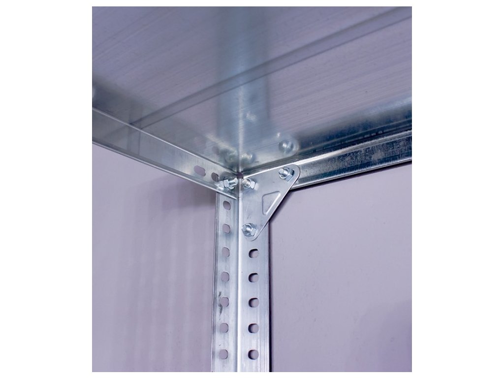 Kovový regálový systém má nosnost 100 kg na jednu polici. Celková nosnost regálu je tedy až 400 kg. Regál je pozinkovaný a odolný vůči korozi i mechanickému poškození. Regály mají trvale pěkný vzhled a jsou jednoduché na údržbu. Skutečný rozměr regálu se podle platné ČSN může z důvodu výrobní odchylky lišit o max. +/- 5%. Pro snadnější přehlednost proto uvádíme velikost v zaokrouhlených rozměrech.