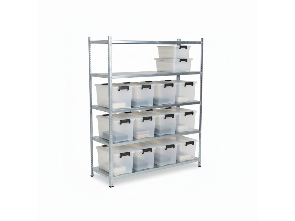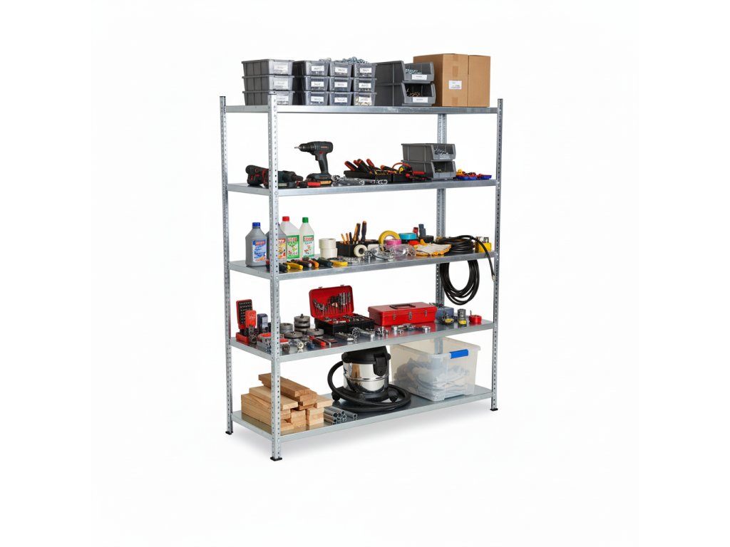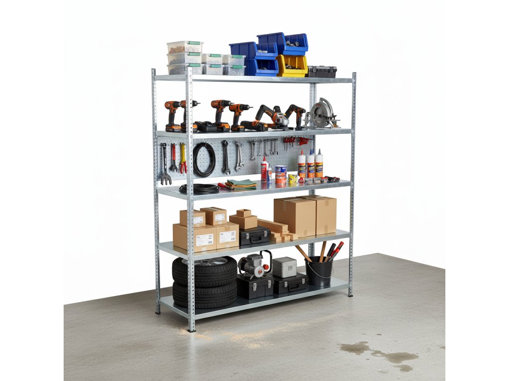 - Nosnost: Každá police unese až 150 kg, což umožňuje bezpečné uchování těžkých předmětů a vybavení.