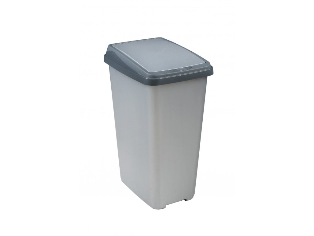 Moderní plastový odpadkový koš vyrobený z kvalitního, pevného plastu, jednoduchý tvar, víko otevíratelné lehkým stiskem, vrchní část je odnímatelná pro snadné vysypávání a jednoduchou manipulaci s pytlem.