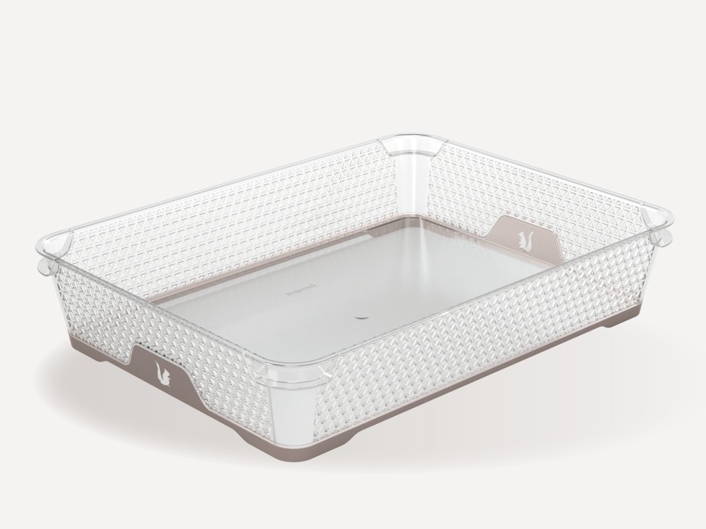 Protiskluzové dno zabraňuje nežádoucímu pohybu košíku. Košík má moderní design, plné dno a boční strany mřížkované, vzdušné. Do kanceláří na papíry formátu A4. Vhodné pro uskladnění pevných potravin, na servírování pečiva, na ovoce, zeleninu, nebo na drobné věci v domácnosti. Vejdou se i do šuplíků. Košíky je možné skládat přímo do sebe a při uskladnění pro další použití vám zaberou jen málo místa.