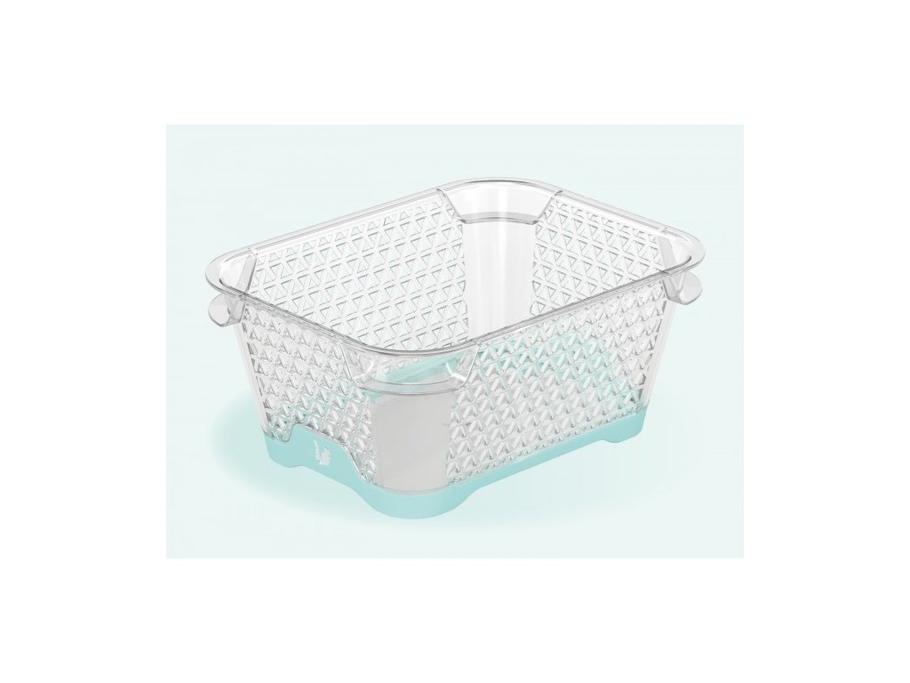 Protiskluzové modré dno zabraňuje nežádoucímu pohybu košíku. Košík má moderní design, plné dno a boční strany mřížkované, vzdušné. Vhodné pro uskladnění pevných potravin, na servírování pečiva, na ovoce, zeleninu, nebo na drobné věci v domácnosti. Vejdou se i do šuplíků. Košíky je možné skládat přímo do sebe a při uskladnění pro další použití vám zaberou jen málo místa.