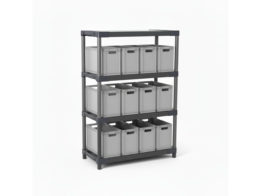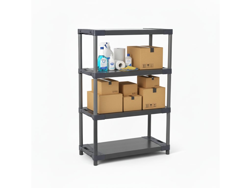 Plastový regál Jupiter se 4 policemi, šedý, 138x90x46 cm
