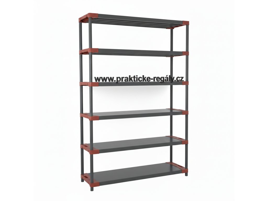 Plastový regál Jupiter se 6 policemi, šedočervený, 222x130x46 cm