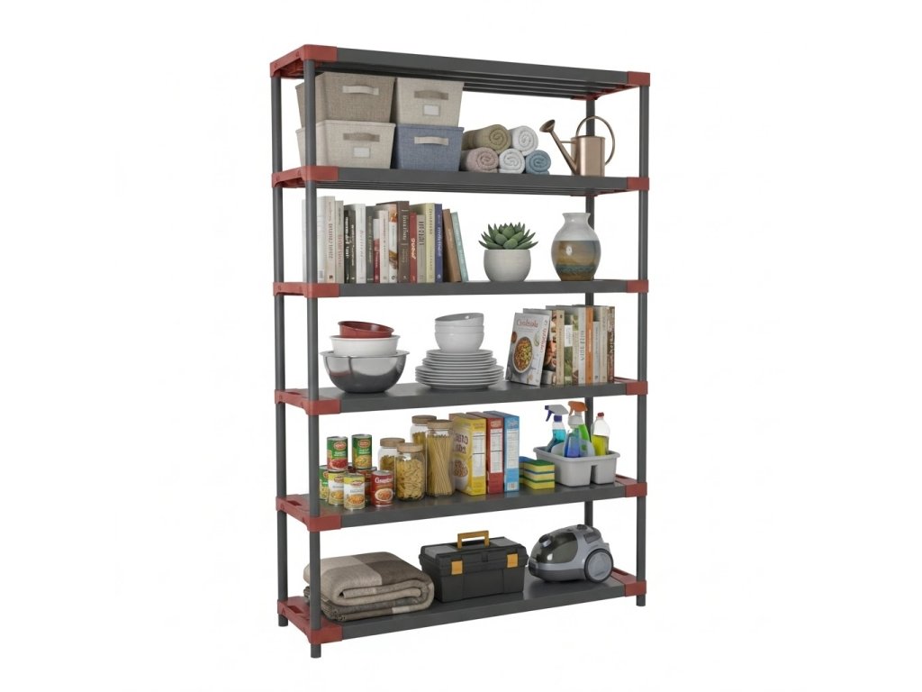 Plastový regál Jupiter se 6 policemi, šedočervený, 222x150x46 cm