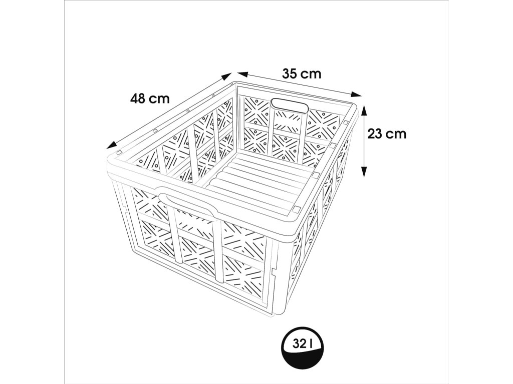Plastový skládací box černý 48x35x23cm.32 litrů. Ideální pomocník pro přenášení a skladování různých věcí. Kvalitní produkt je skládací a proto zabere minimum místa, když ho zrovna nepotřebujeme. Parádní pomocník do auta na nákupy. Vhodný do všech podmínek. K tomuto produktu je možno dokoupit i termoobaly a tašky na míru.