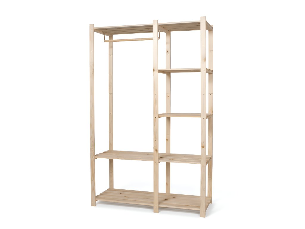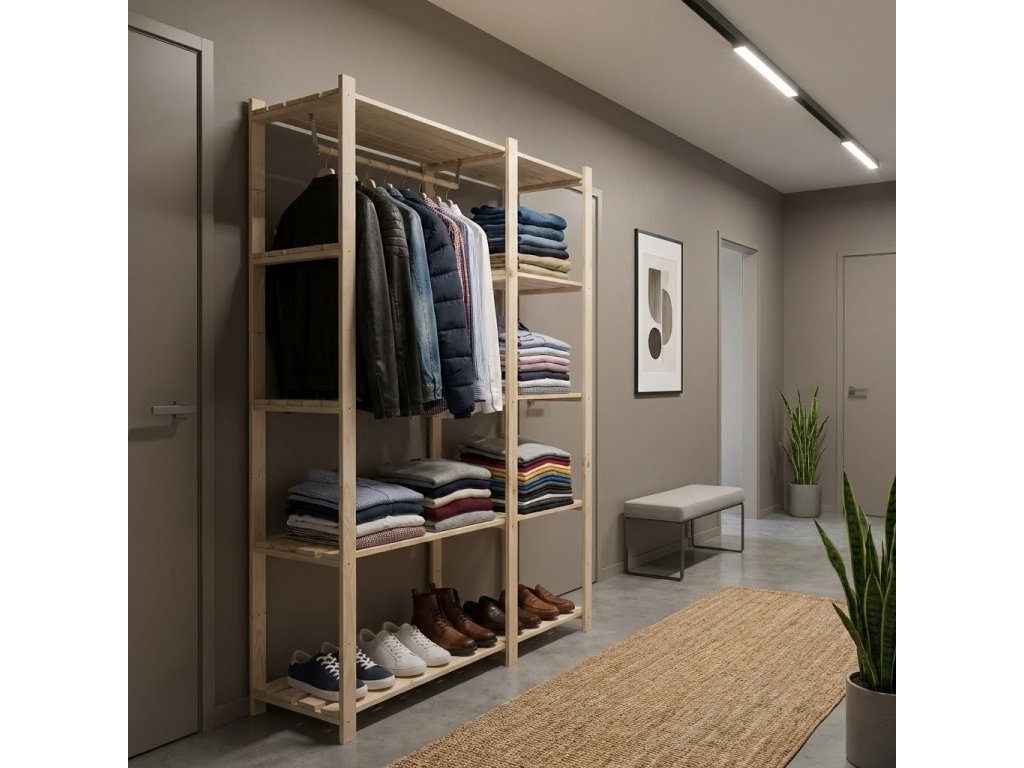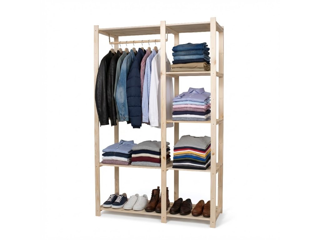 Objevte dokonalé řešení pro organizaci vašeho prostoru s naším elegantním dřevěným šatním regálem. Tento stylový a praktický regál je ideální pro uskladnění oděvů, obuvi a doplňků, a dodá vašemu interiéru přírodní kouzlo.