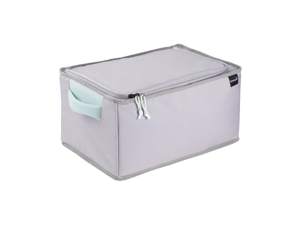 Skládací izolační taška v barvě šedé s prvky v akvamarínové barvě o rozměrech 42,5 x 29,5 x 23 cm a objemu 29 l.