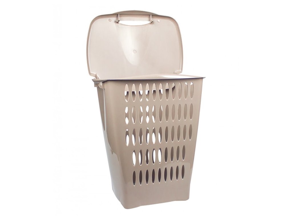 Vysoký koš na prádlo, 45 l, šedý s elegantním designem a praktickým otvíratelným víkem. Tento robustní, lehký, pružný a hlavně pevný prádelní koš je velmi krásným doplňkem každé koupelny. Jednoduché tvarové uchopení umožňuje snadnou manipulaci a přemisťování. Oceníte zejména jeho velikost, omyvatelnost, údržbu a prodyšnost, díky abstraktně tvarovaným otvorům. Praktický prádelní koš je vyroben z pevného plastu - polypropylenu.